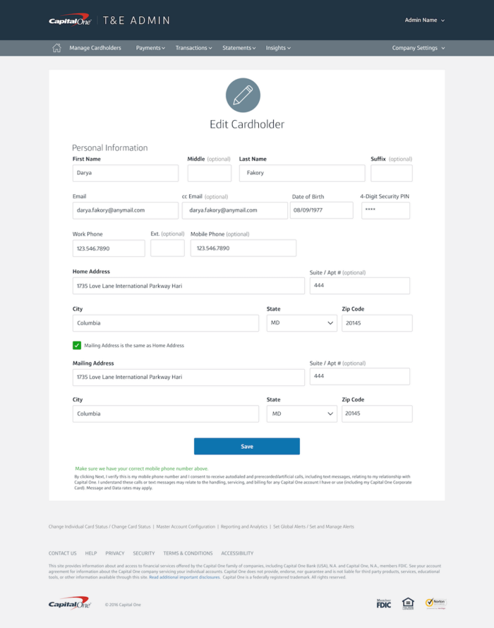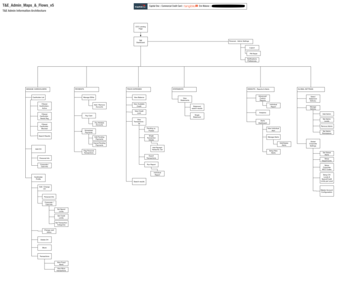 I create the Information Architecture for the entire Travel & Expenses Administrator Tool even though the engagement was focused on the Manage Cardholders section only.